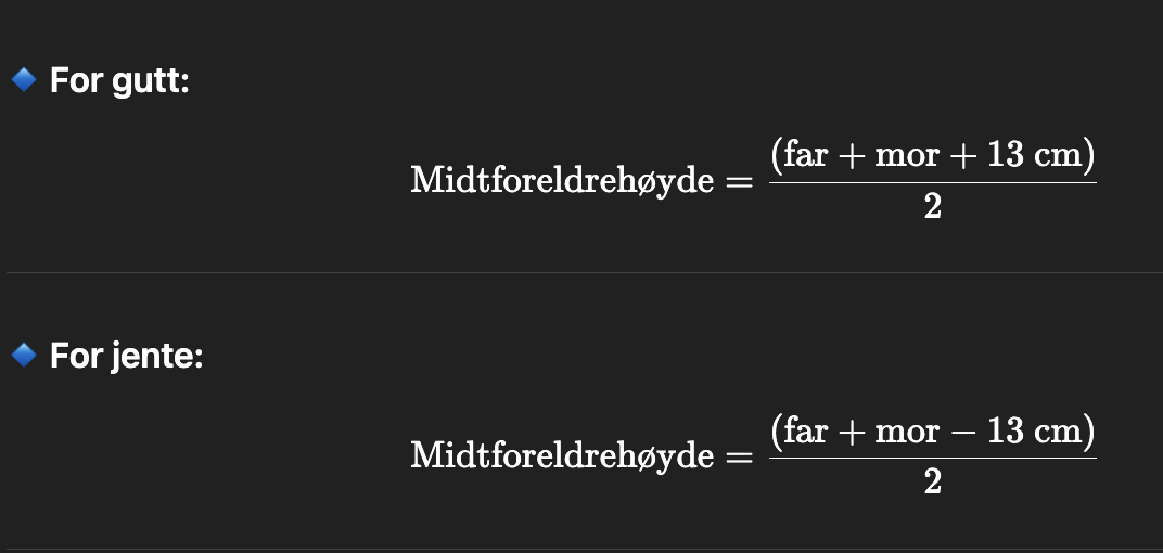 Hvilket genetisk potensialet har barn for høydevekst, og hvilken formel bruker man til dette?