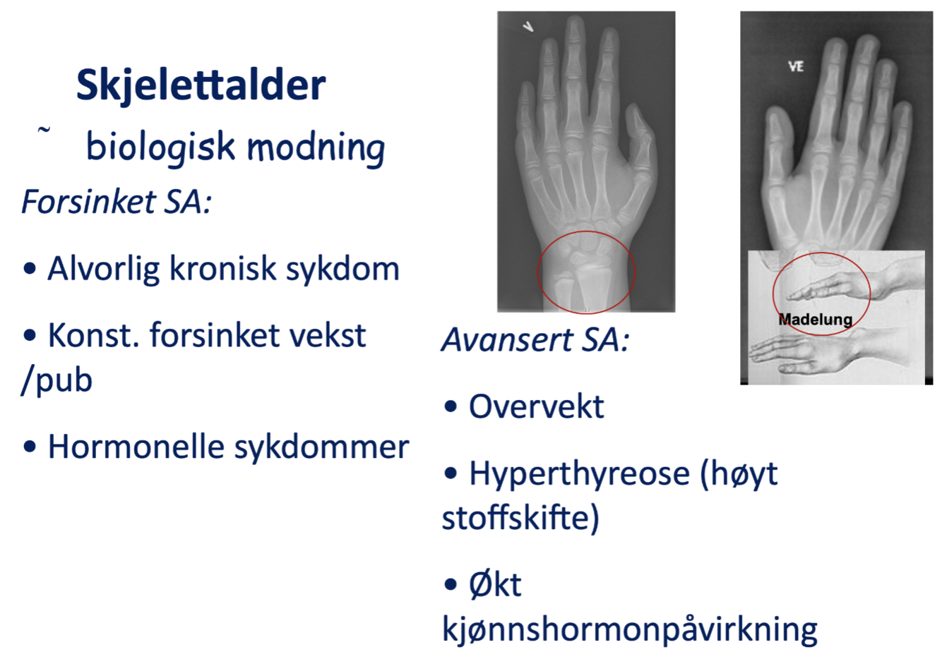 Hva er skjelettalder, og hva kan gi forsinket/avansert SA?