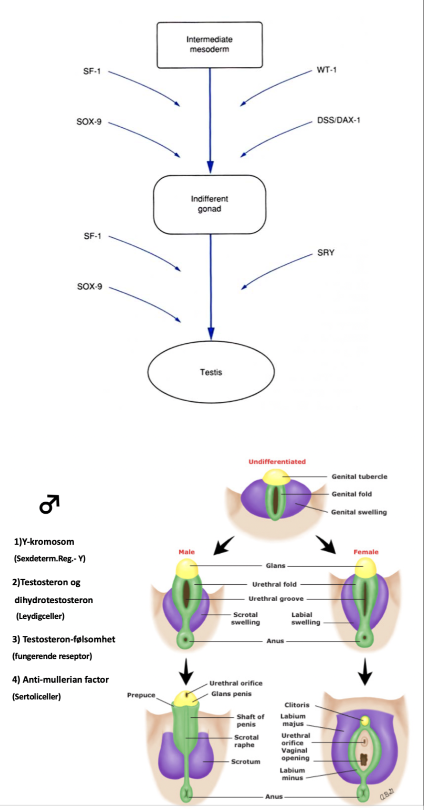 Hvilke faktorer er det som fører til dannelsen av testis?