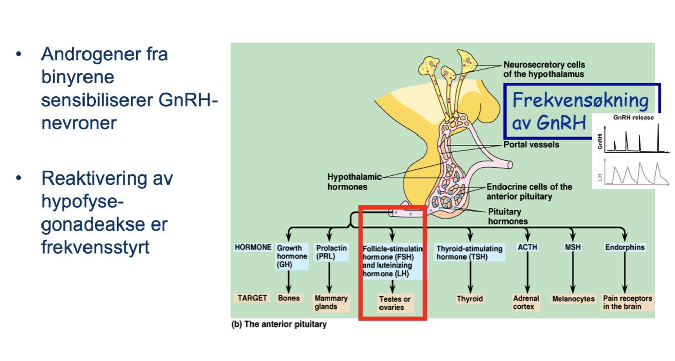 Hypothalamus begynner å skille ut GnRH pulsatilt