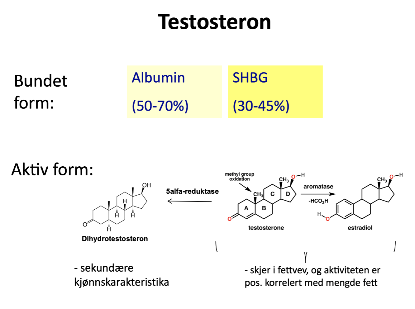 Hvilke enzymer omgjør testosteron?