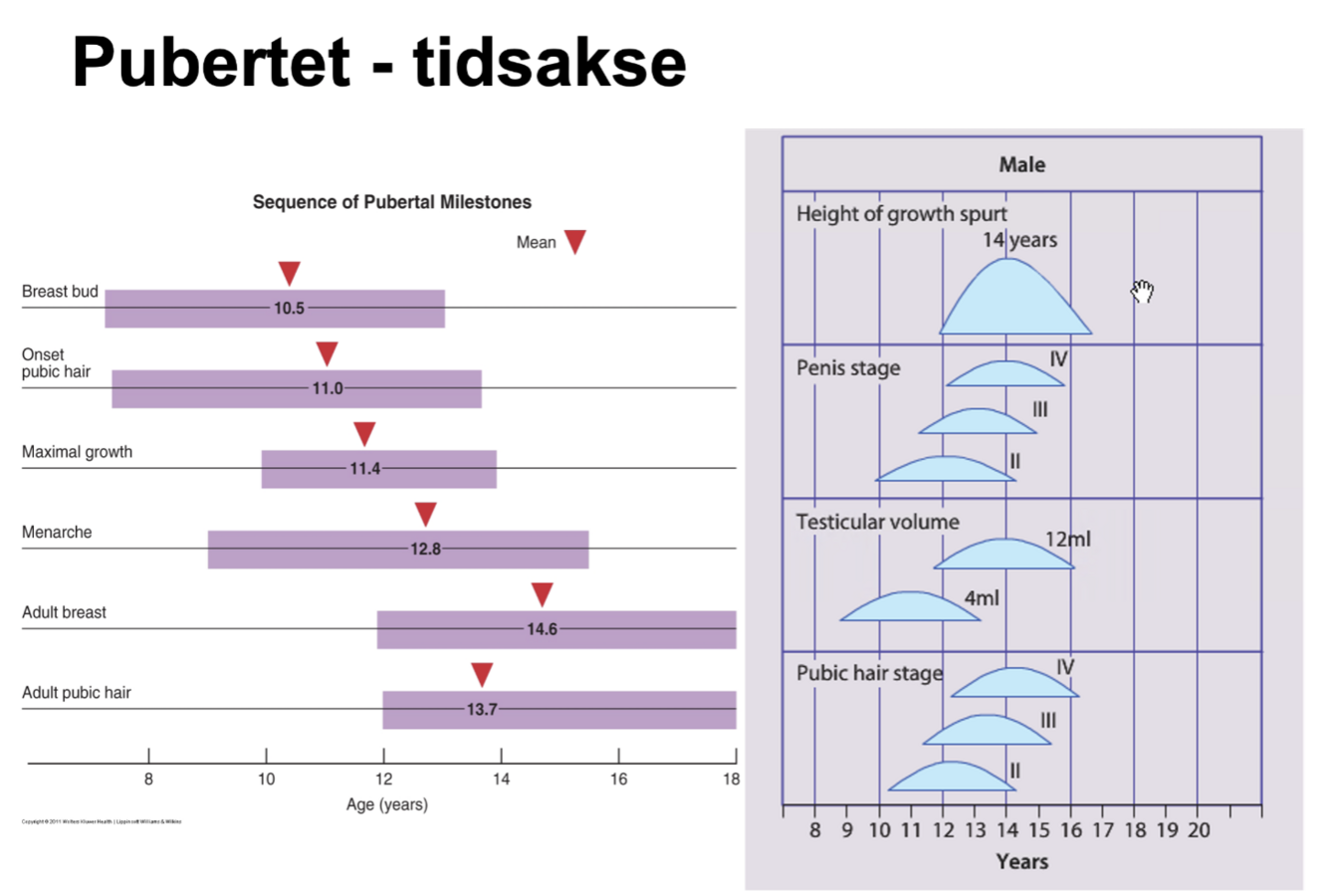 Hvordan er tidsaksen ved en normal pubertet?