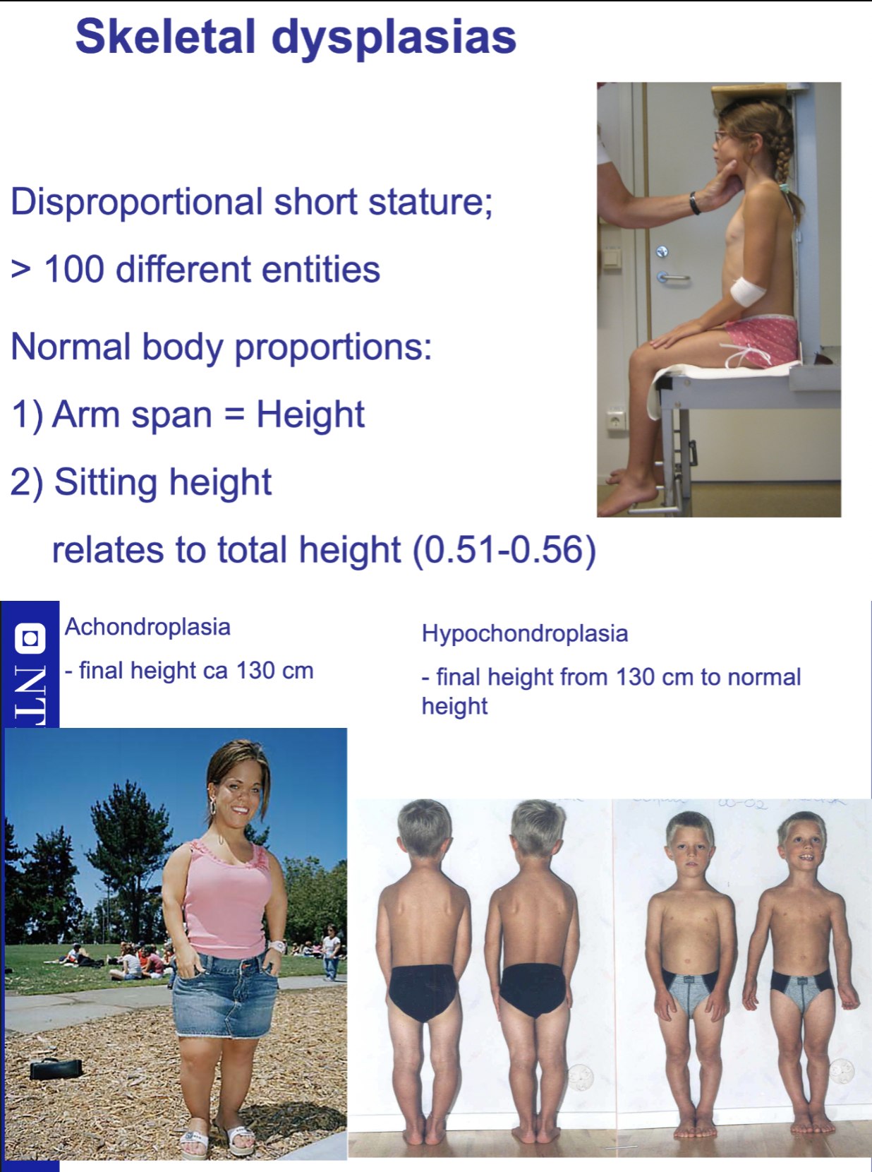Hva slags kroppsproporsjoner har pas. med skjelettdysplasier?