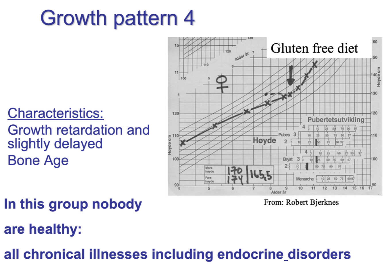 Nevn eks. på lidelser som gir vekstmønster 4?