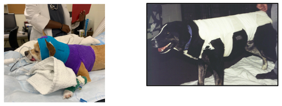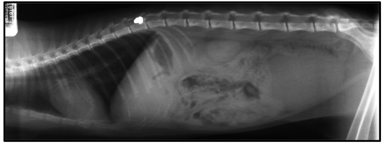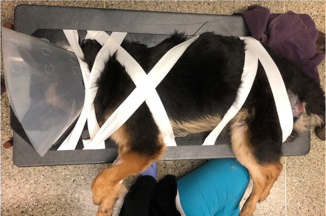 4. Temporarily immobilize in lat. recumbency (secure pt. to rigid platform), w/out interfering w/ respiration, and obtain radiographs