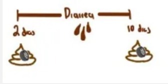 2 días antes excretas en heces el rotavirus, hay diarrea y después de 10 días los excretas de nuevo.
