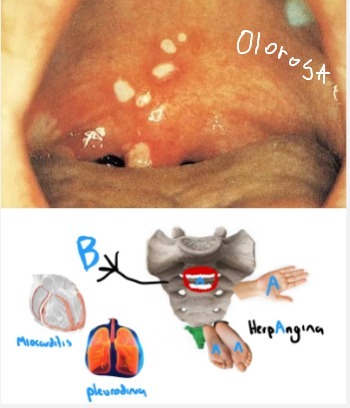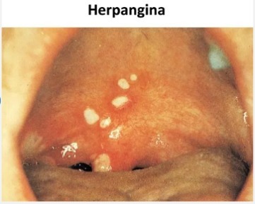 El herpes se da en encías y la herpangina en paladar (lesiones muy dolorosas)
