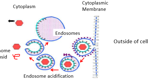 Acidic condition in the endosome triggers changes in viral structural proteins resulting in uncoating and release of the viral genome