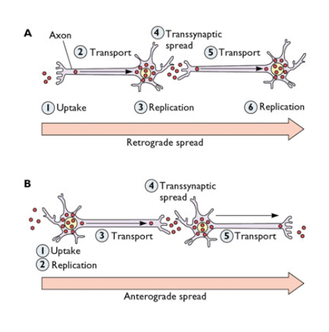 If virus enters PNS or ganglia > travel via axon fibres to CNS