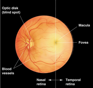 Fovea: central/ thinner region of retina