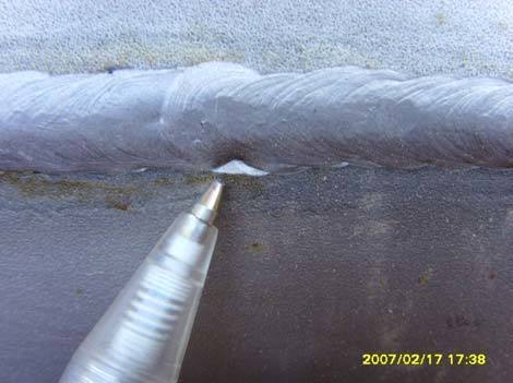 When the base metal is melted but not filled in with weld metal, _______ results at the toes of the weld.