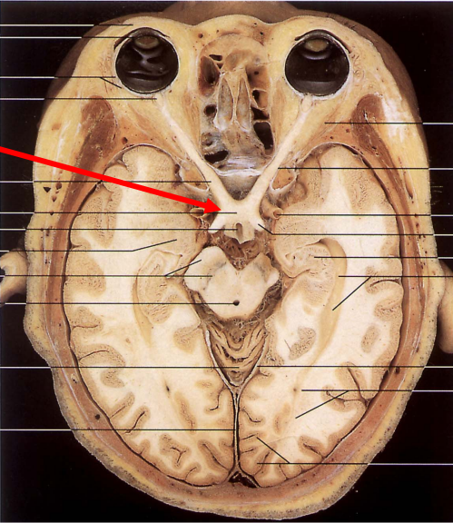 Lies at base of brain, anterior to pituitary, with internal carotid artery on either side