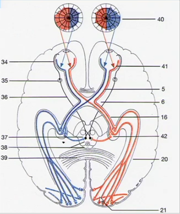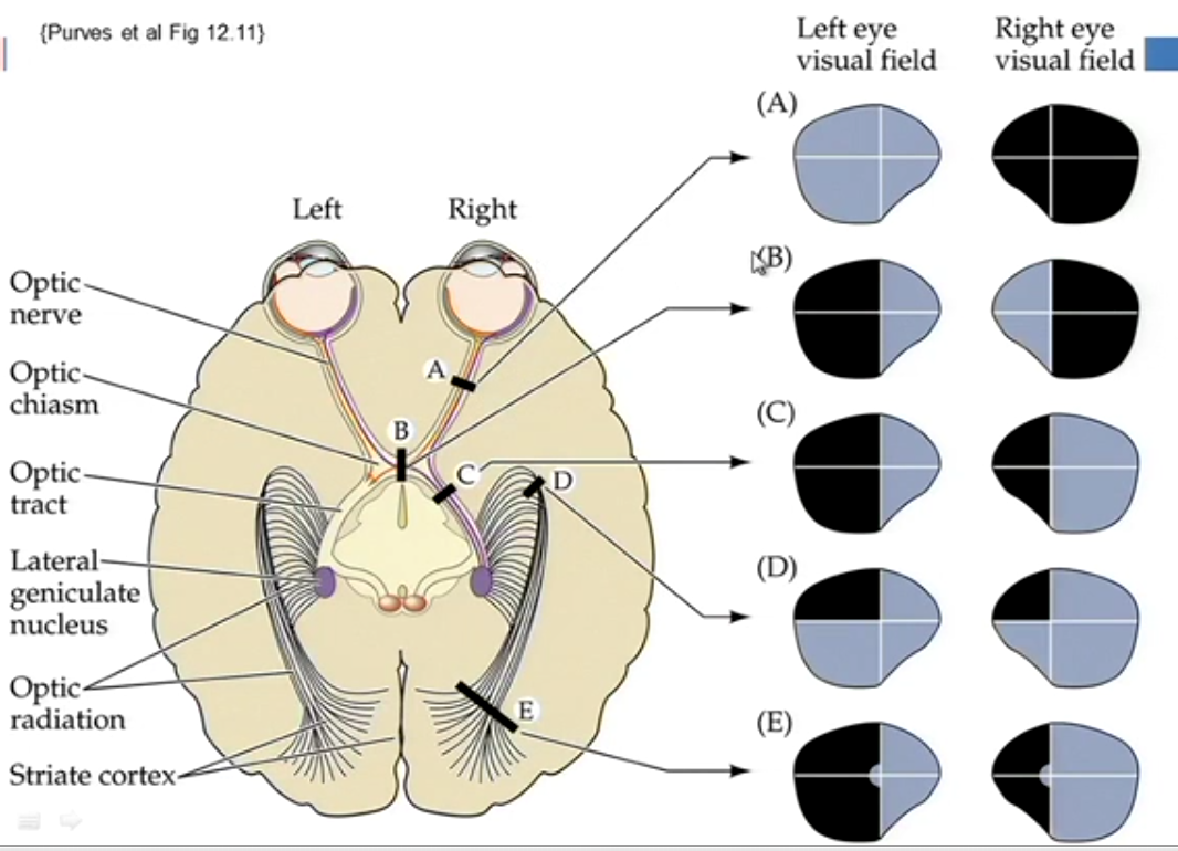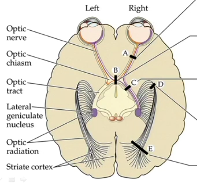 3) Lesion that affects the same side in both eyes must be posterior to the chiasm