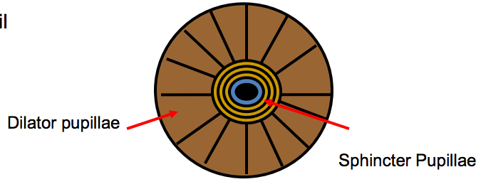 Constrict: sphincter pupillae, innervated by parasympathetics