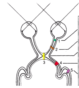 2: complete optic nerve lesion = complete blindess in that eye