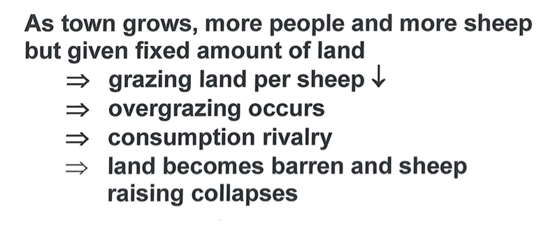 each individual’s going is to maximise their private benefit from common resource BY using more of the common resource