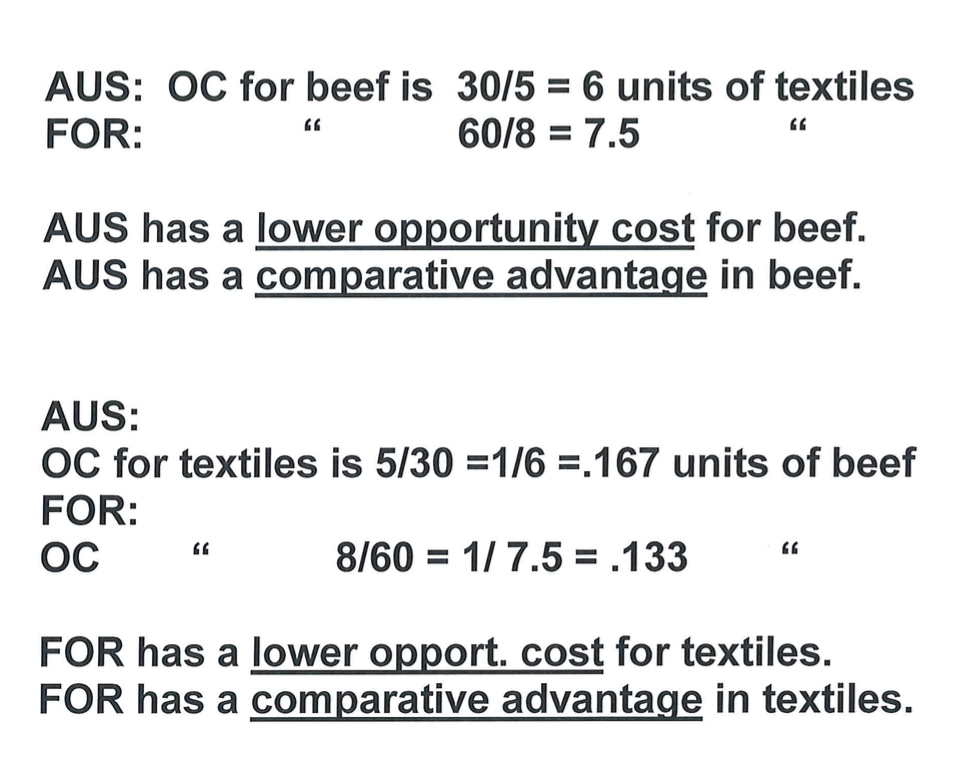 since Opp cost of beef is 6 units of textile for AUS