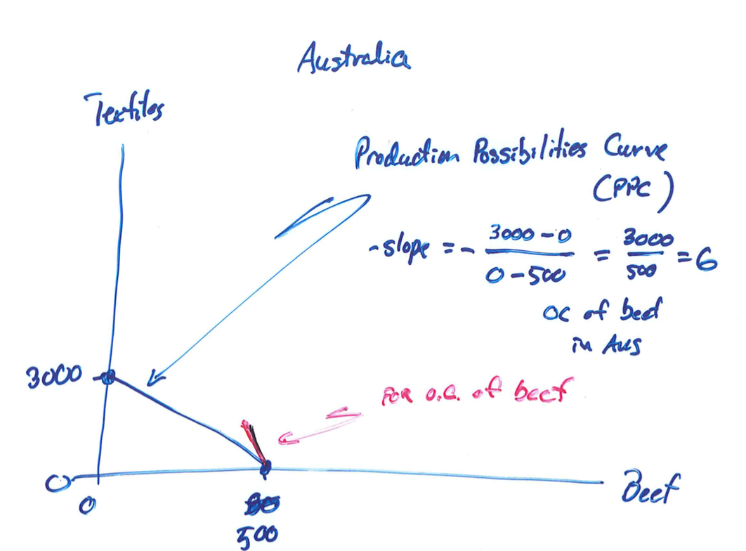 Given australia can produce up to 500 units of beef and 3000 of textile, show on PPC
