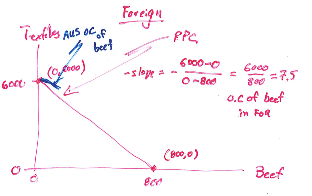 Given foreign can produce up to 800 units of beef and 6000 of textile, show on PPC