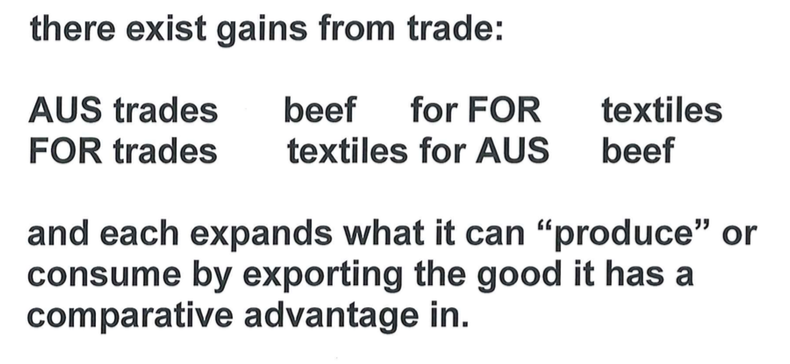 Aus is lower cost producer for beef if Aus is lower cost producer for textiles if