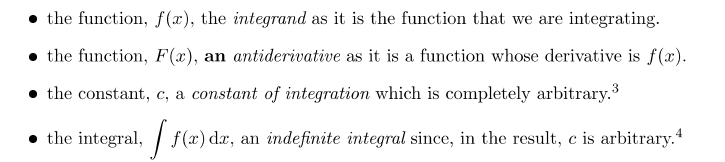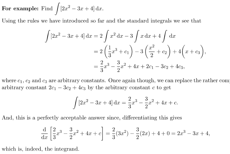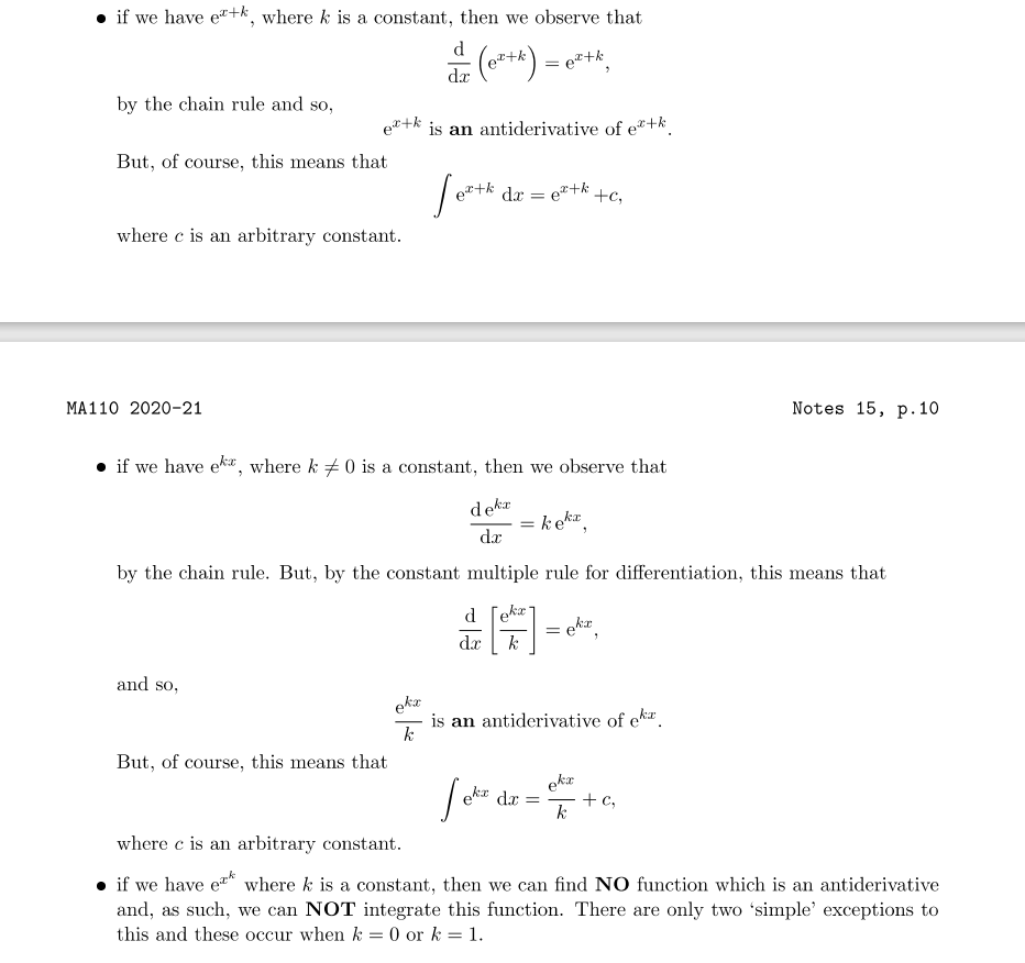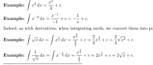 We have to include a dx and secondly we have include a constant multiple, always + c unless we have a a defined integral, which we will come to in notes 17.