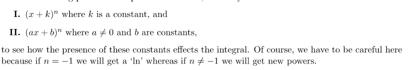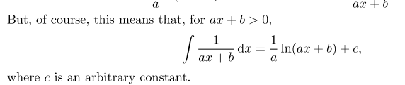 Whats the integral of (ax+b) when n = -1 and a doesnt equal 0?