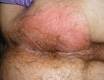 Erythematous right buttock.