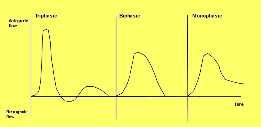 In a patient with peripheral vascular disease, what do you expect to see on a Doppler Pulse study?