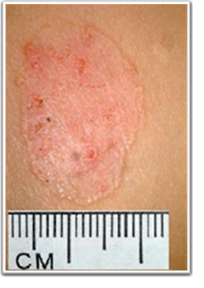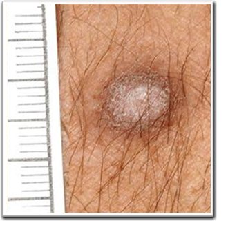 What is the most likely diagnosis of the skin lesion shown (hint think about the area it is presenting)