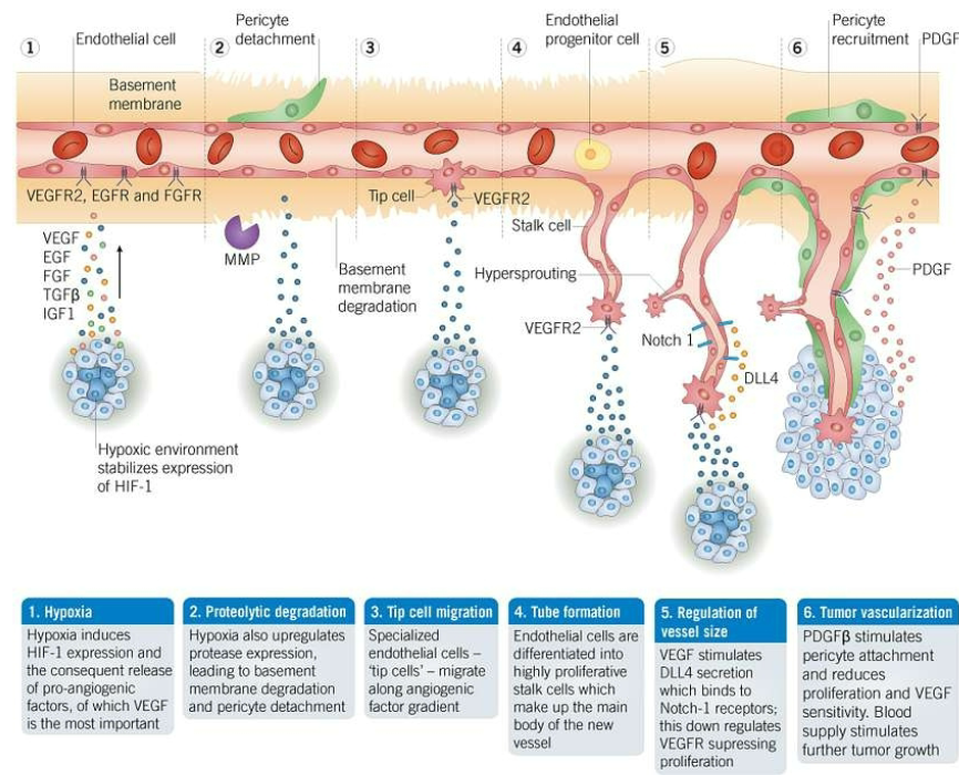 invasion- inc mechanical pressure, hypoxia/ blood supply, increased motility and production of degradation enzymes.