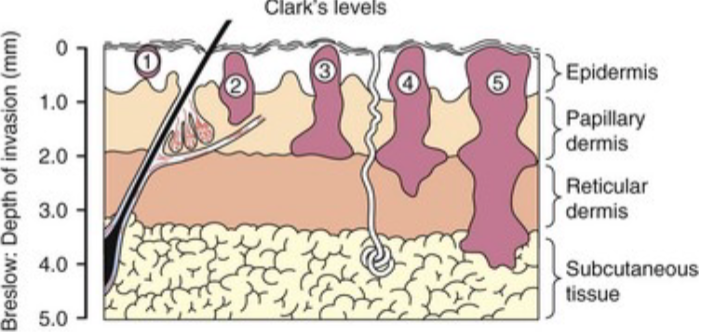 Outline what is meant by the Breslow thickness and how it can be used in staging