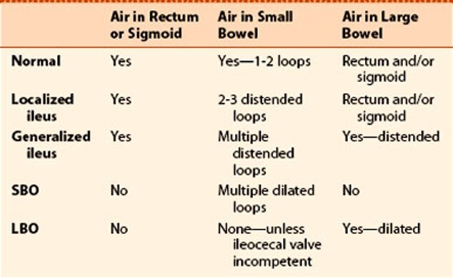 What are the 4 abnormal bowel gas patterns?