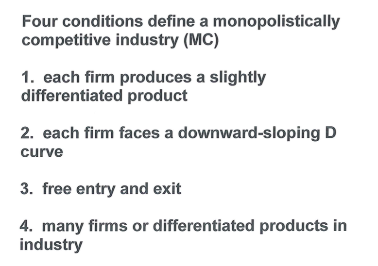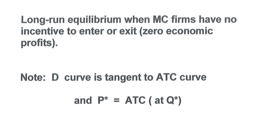 two characteristics of long run equilibrium for monopolistic competitive industry
