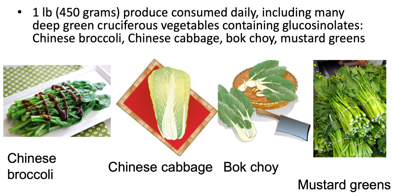 Broken down to biologically active compounds that have potential anti cancer effects. Rich in vitamin C and Vitamin K and folate and fibre and beta carotene. Carotene portents body from free radicals. They are green though because they contain chlorophyll which hides the beta carotene