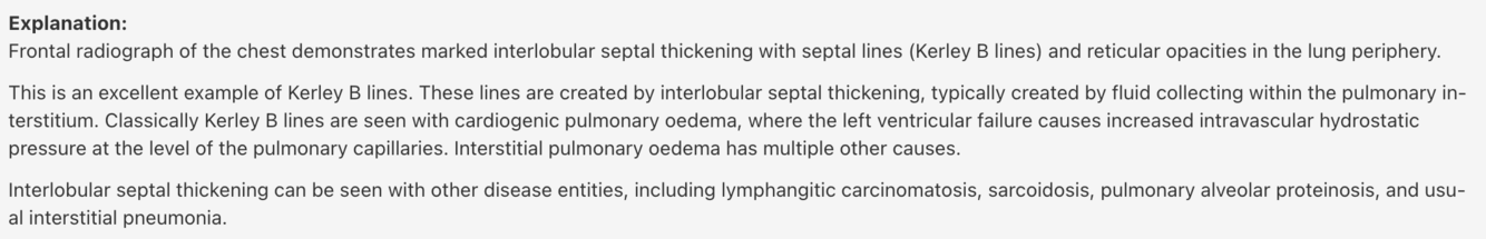 Answer: Kerley B lines, seen in cardiogenic pulmonary oedema
