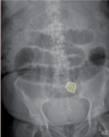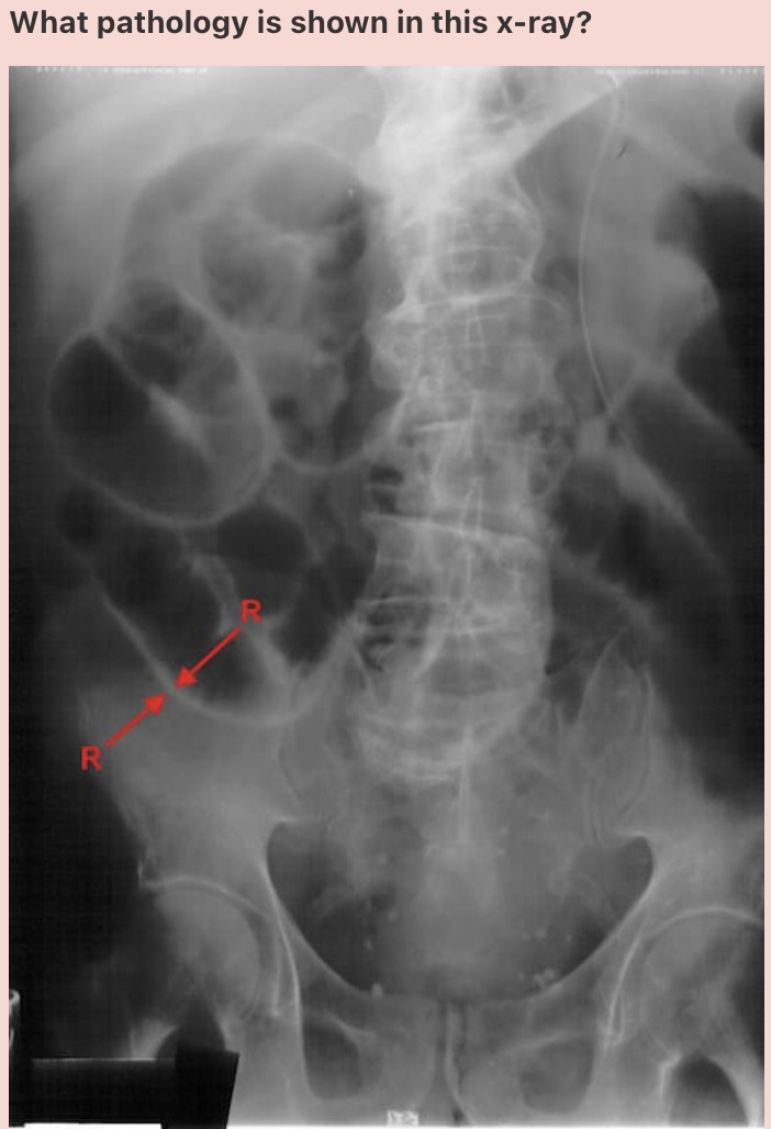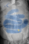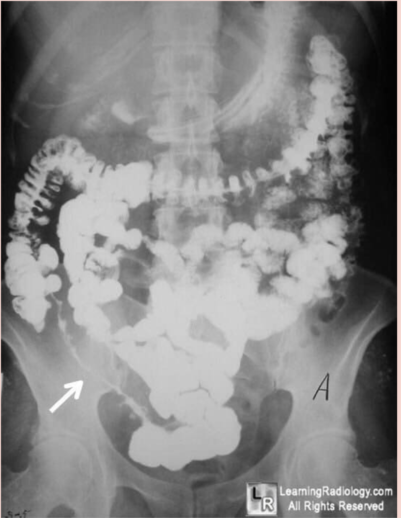 ‘Lead pipe sign’ is noted in the descending colon, on the right border of this image.