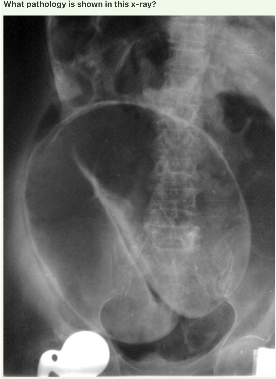 Answer: Pneumoperitoneum
