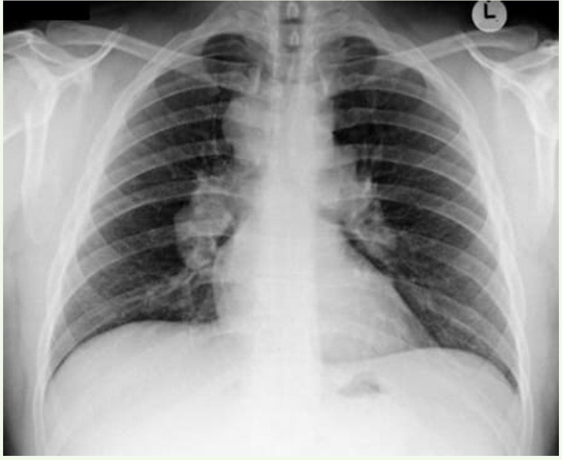 HPC: A 45-year-old man presented to ED with dyspnoea, chest pain, palpitations, and cough. Erythema nodosum on the shins were also noted.