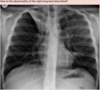 Flattening of the diaphragm is also observed in this x-ray which is a reliable feature of lung hyperexpansion.