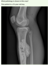 What pathology causes the following presentation (shown by the white arrow)?