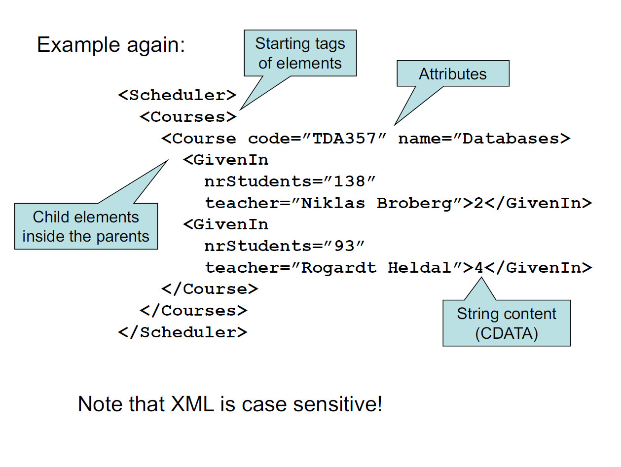 – Compare with HTML: HTML uses ”tags” for