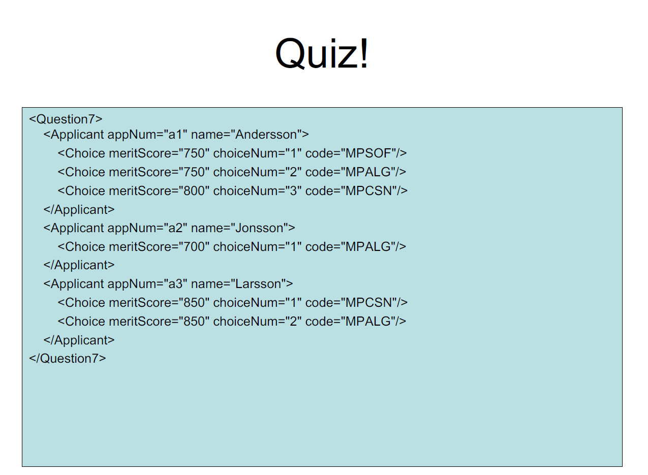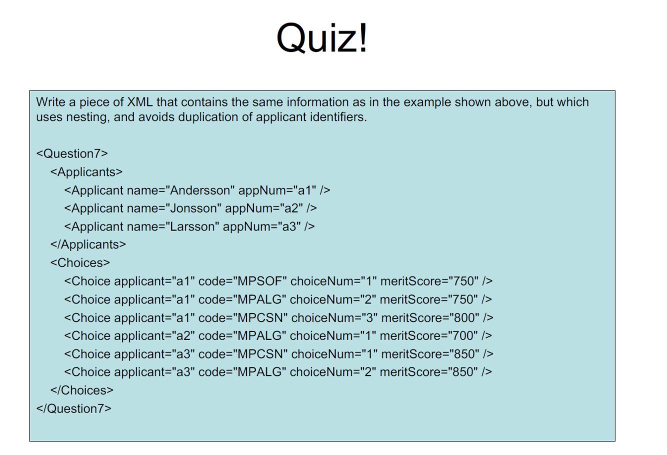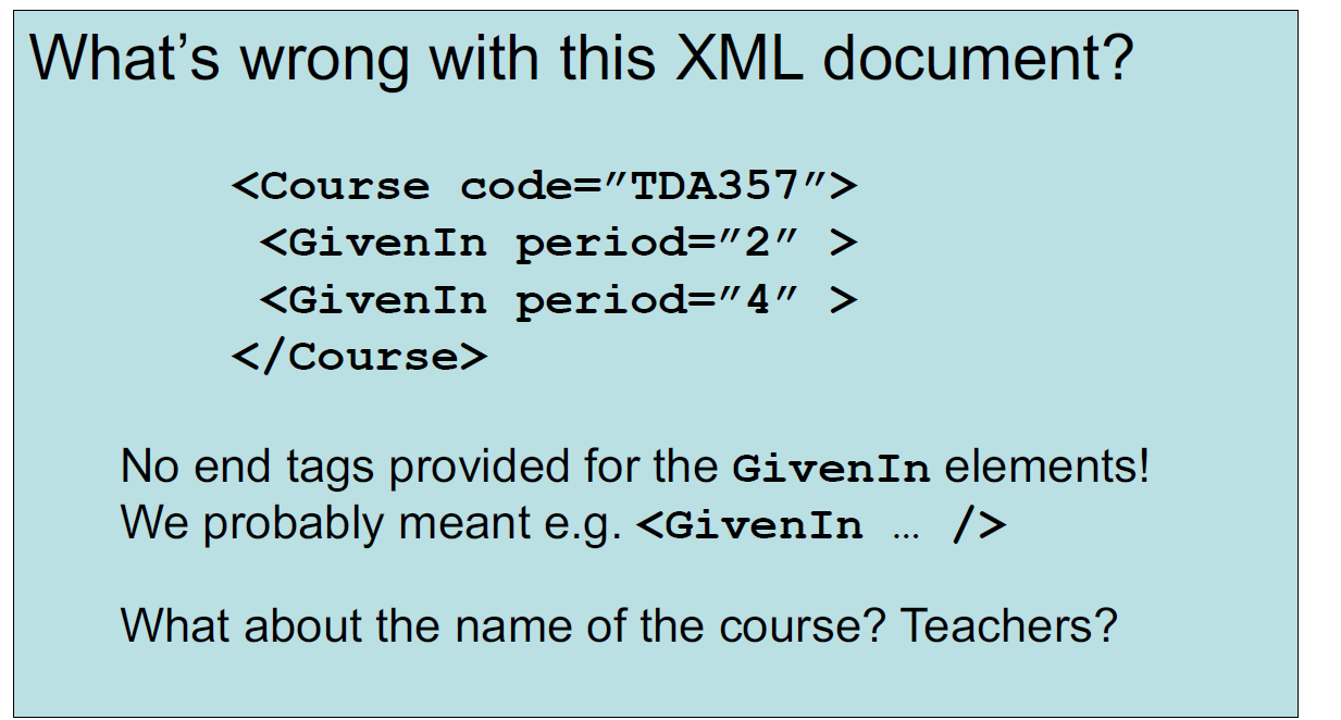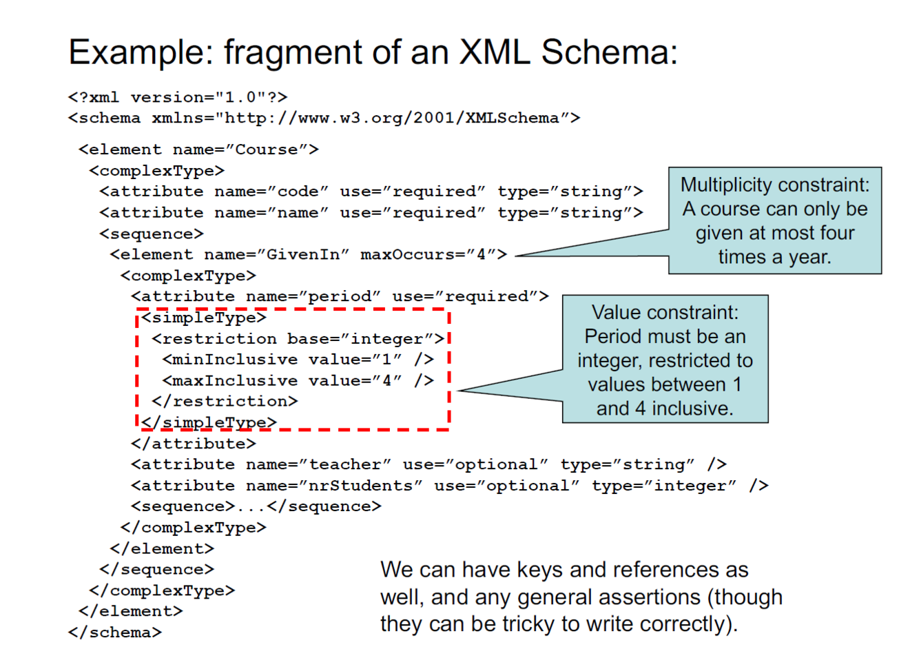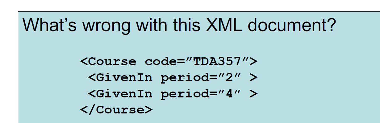 – Example: All ”course” nodes must have a