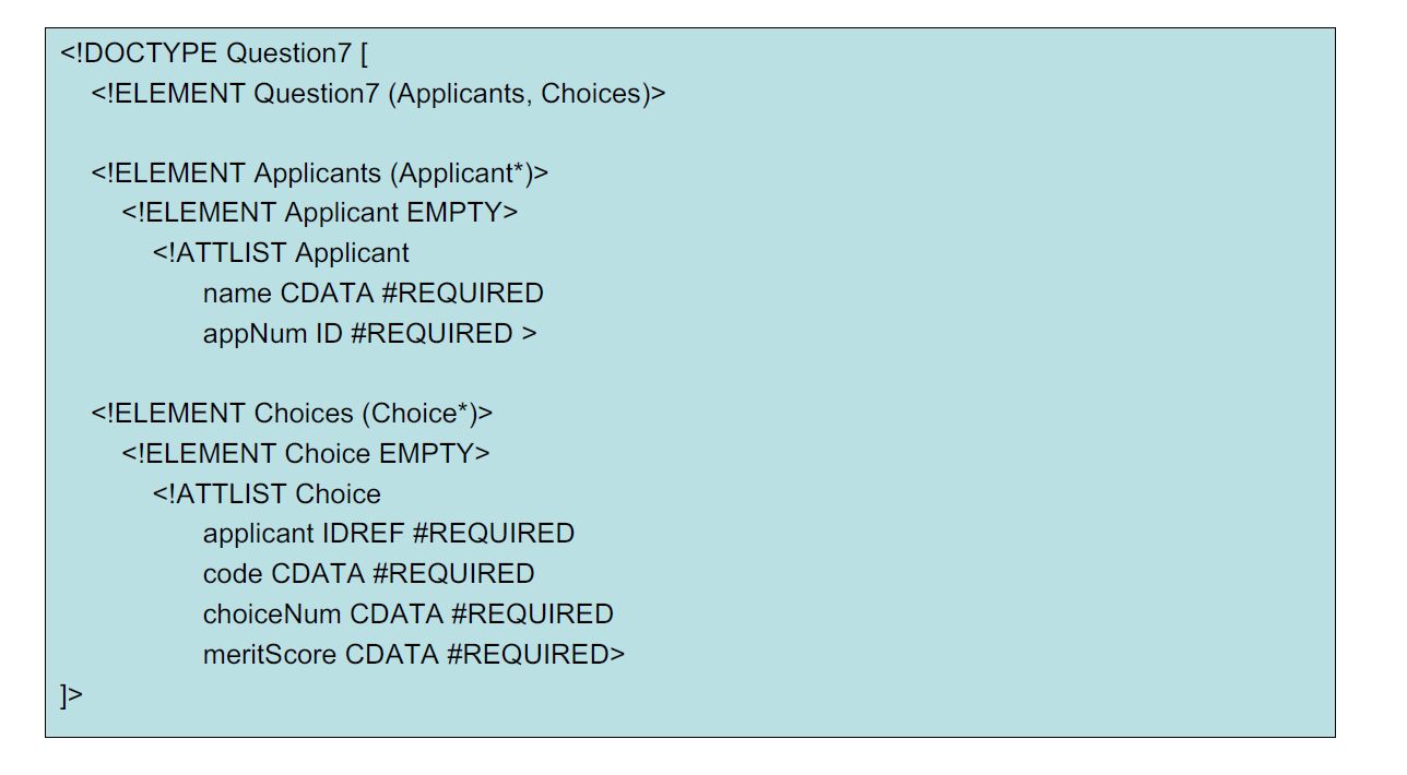 • A DTD is a schema that specifies what