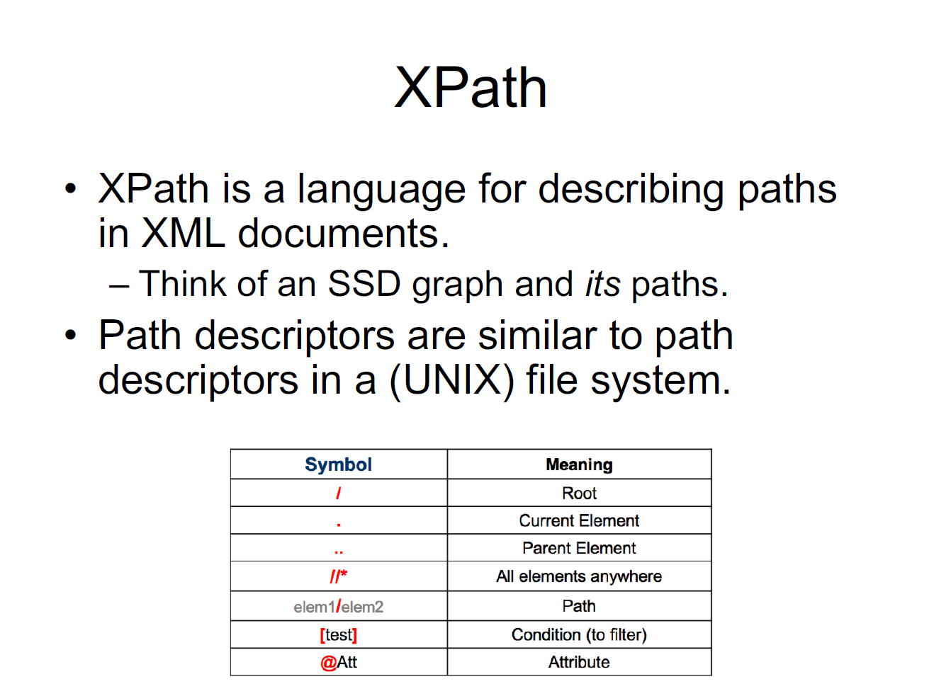 – Cf. SQL queries for relational data.