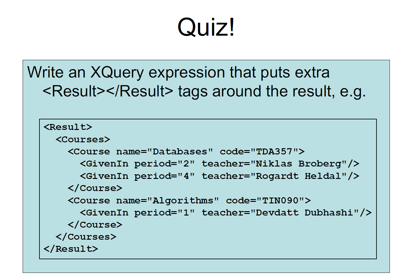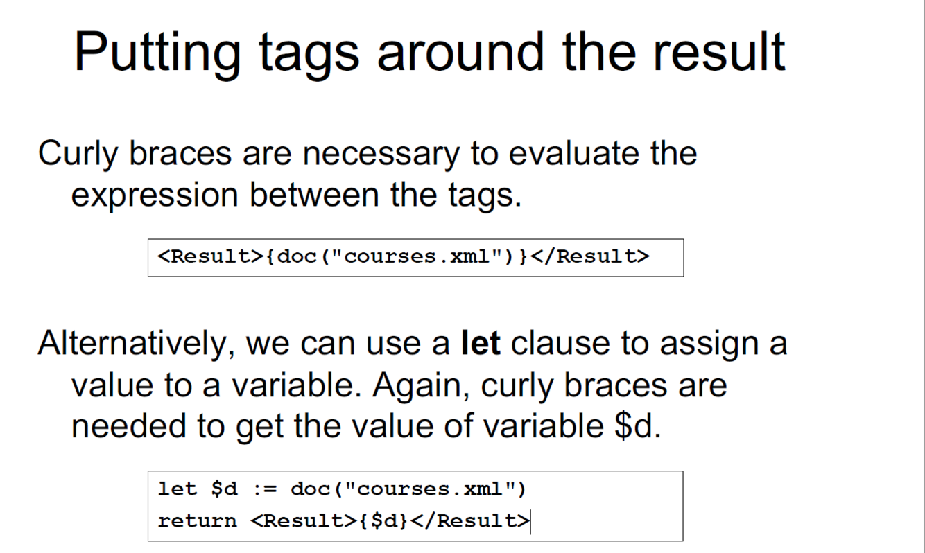 • XQuery is a full-fledged querying language