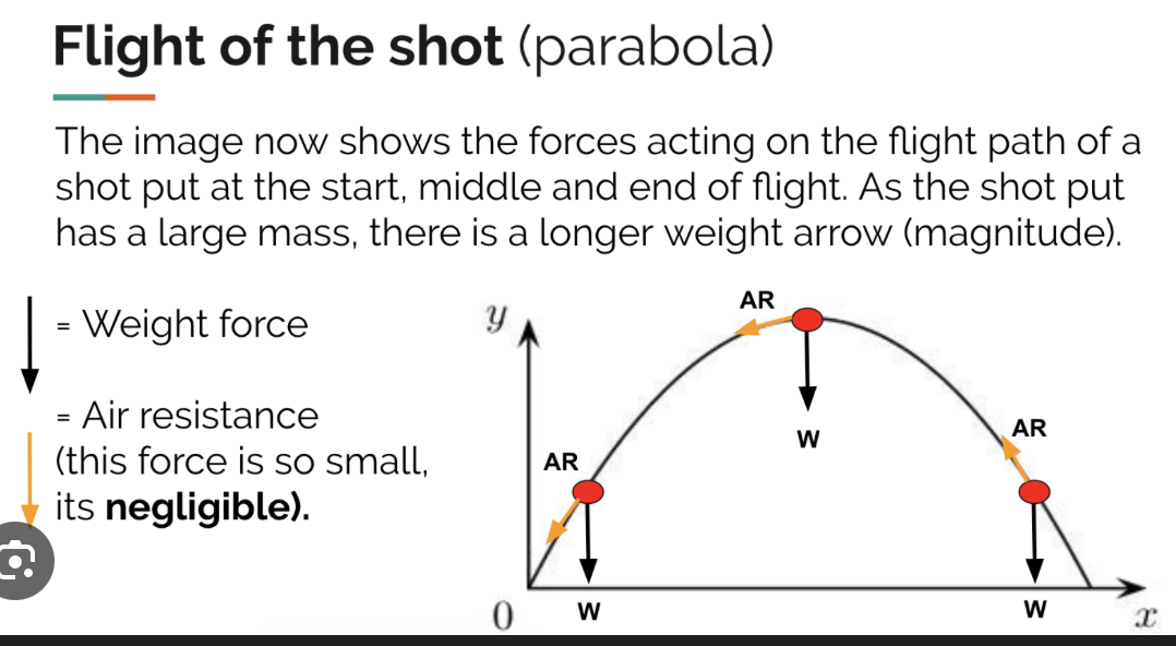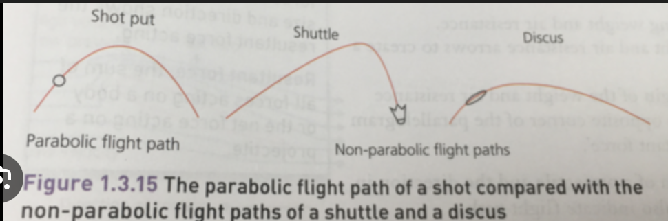A shotput is a true parabola whilst a shuttlecock has a distorted parabola due to it being more heavily affected by air resistance